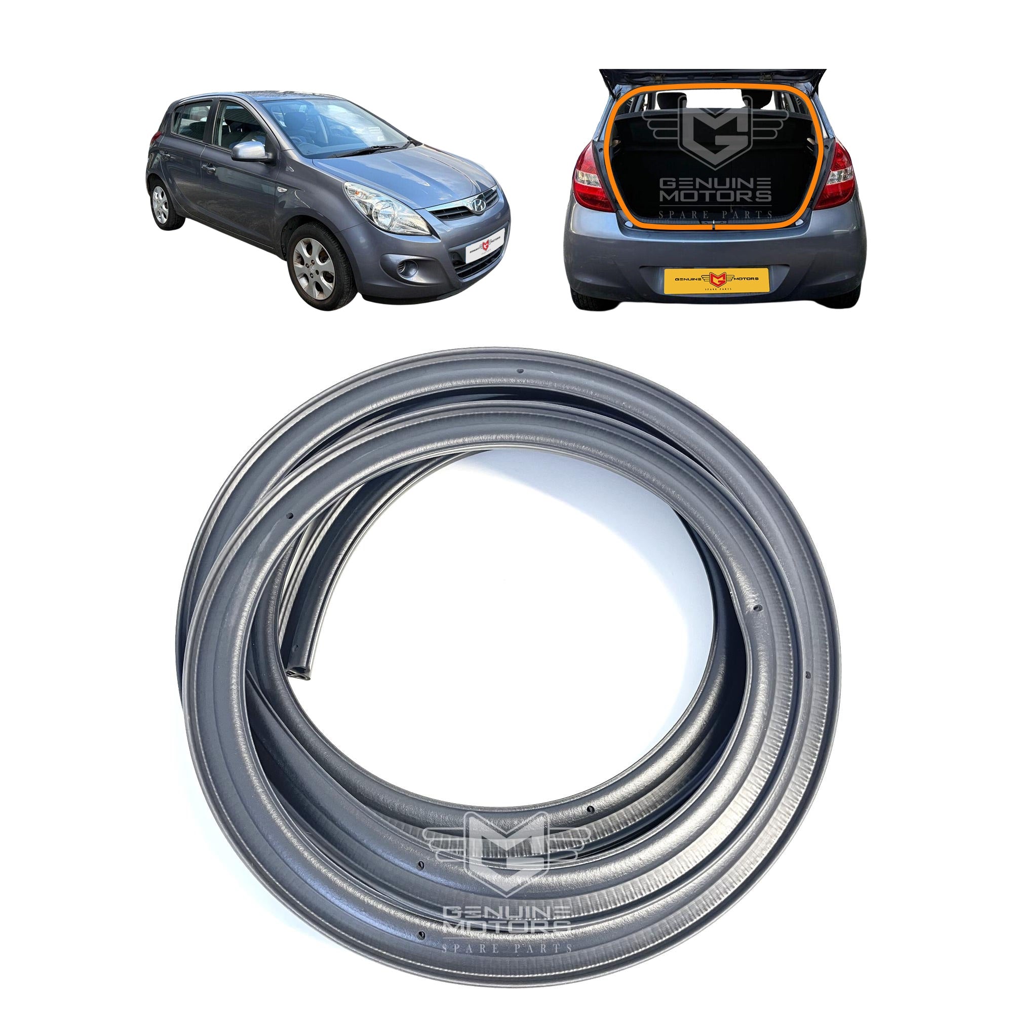This boot/tailgate rubber seal fits the Hyundai i20 MK1 (PB) models from 2008 to 2014. It is a Co-Ex Rubber product with metal reinforcement applied to the body of the vehicle. This item is one piece to cover the boot (Tailgate) only. You might need to trim the item for a perfect fit.